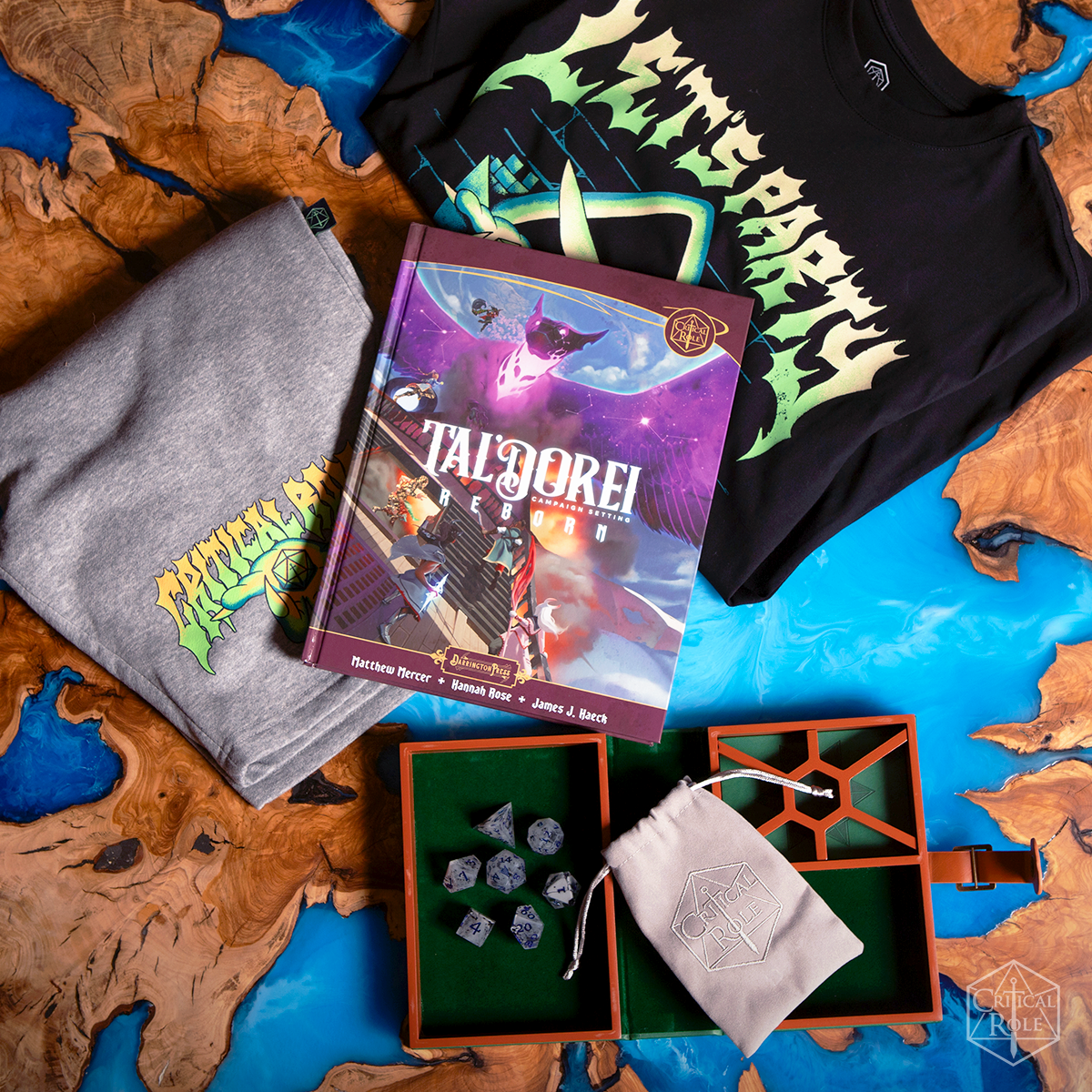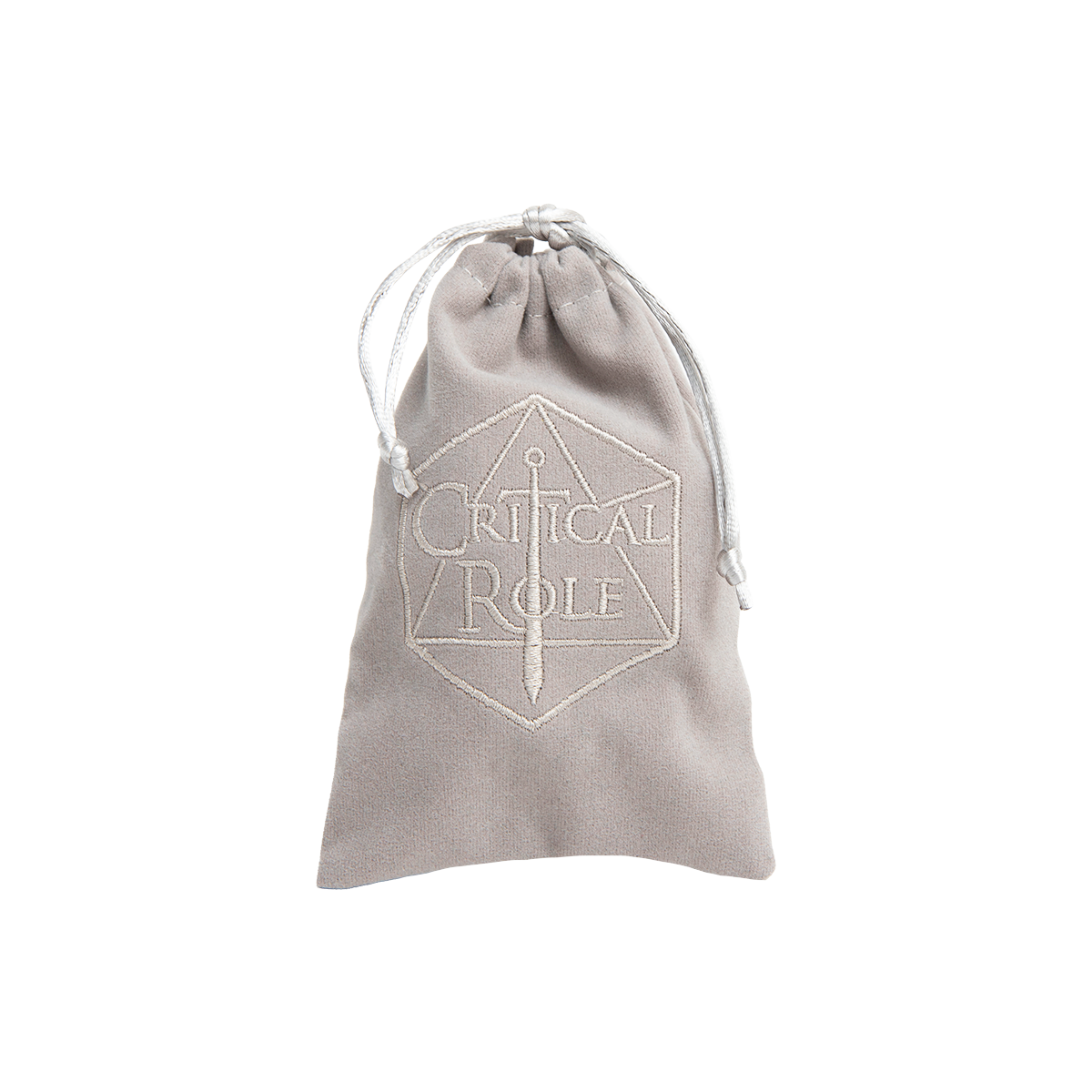 • Includes a gray velveteen drawstring bag with an embroidered Critical Role logo.