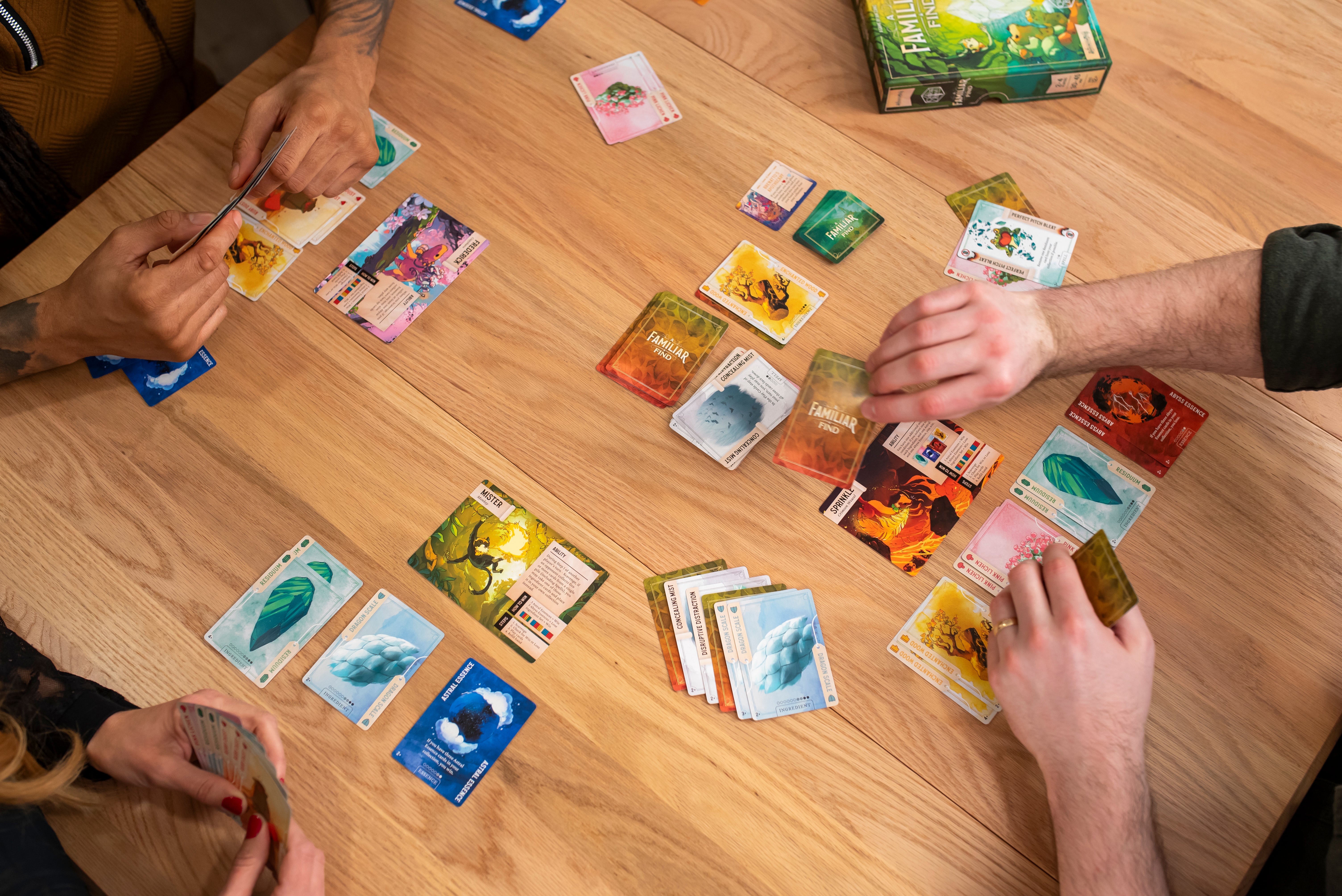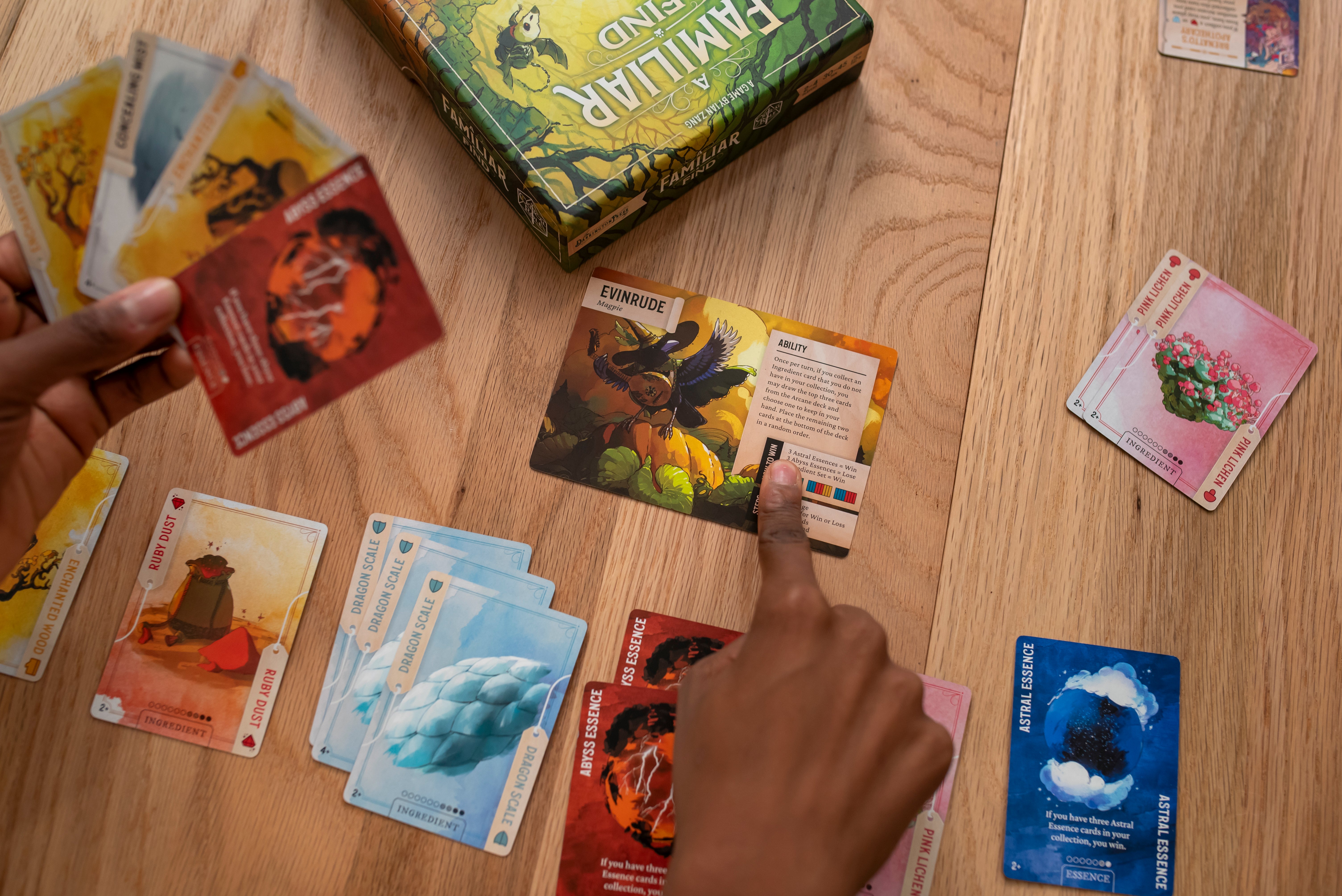 So, you’ll have to beware! Competing familiars are lurking nearby, setting traps, calling your bluff, and trying to sabotage your plans. Get crafty and use your wits to keep your strategy hidden, know when to reveal ingredients, and trick your opponents at just the right moments.